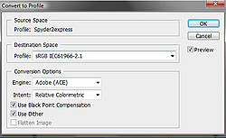 Click, Edit - Convert To Profile. In the Destination Space select sRGB IEC61966-2.1 (fig 1)